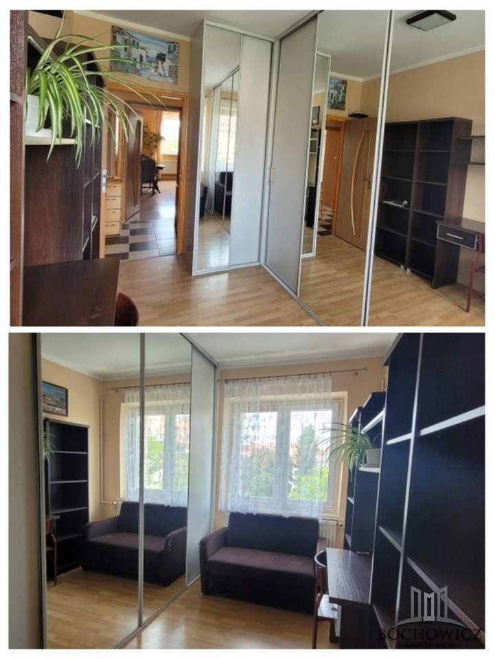 2 większe pokoje (ok. 20 i 17 m2) z wystawa okien od strony południowo - wschodniej), 1 pokój  ok. 10 m2 oraz kuchnia ok. 8m2 od strony zielonego podwórka (pn. zach.).