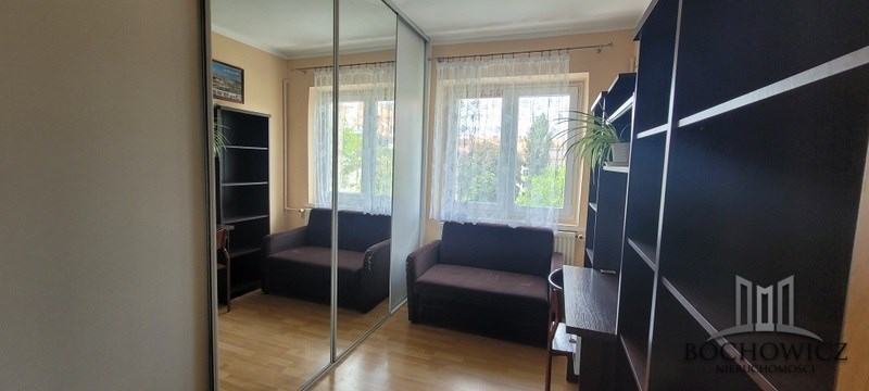 2 większe pokoje (ok. 20 i 17 m2) z wystawa okien od strony południowo - wschodniej), 1 pokój  ok. 10 m2 oraz kuchnia ok. 8m2 od strony zielonego podwórka (pn. zach.).